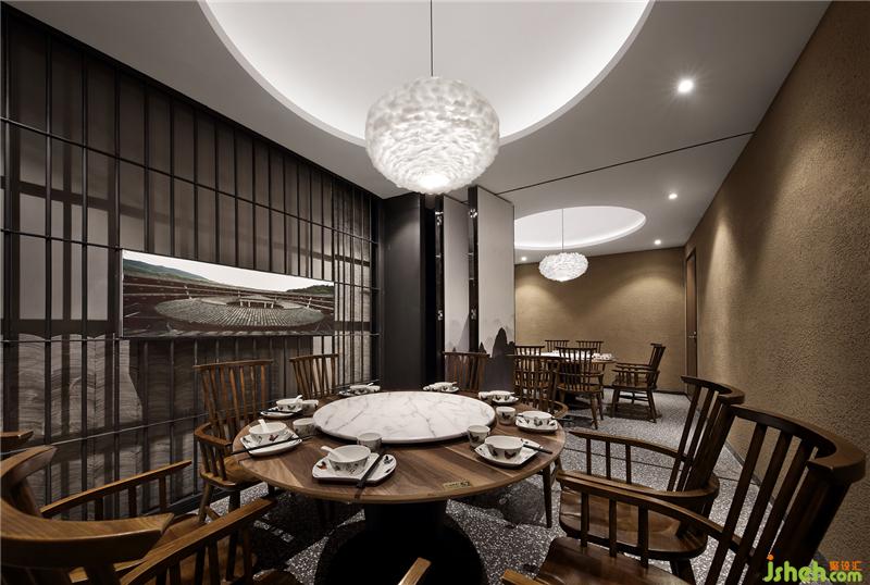 如由圍屋造型的簡化而來的趣味用餐空間,如輕盈別致的燈籠造型,如木與石樸實質(zhì)地的碰撞,無不突顯出客家人團(tuán)結(jié)奮發(fā)、兼容并蓄、注重傳承的文化特點。餐廳設(shè)計