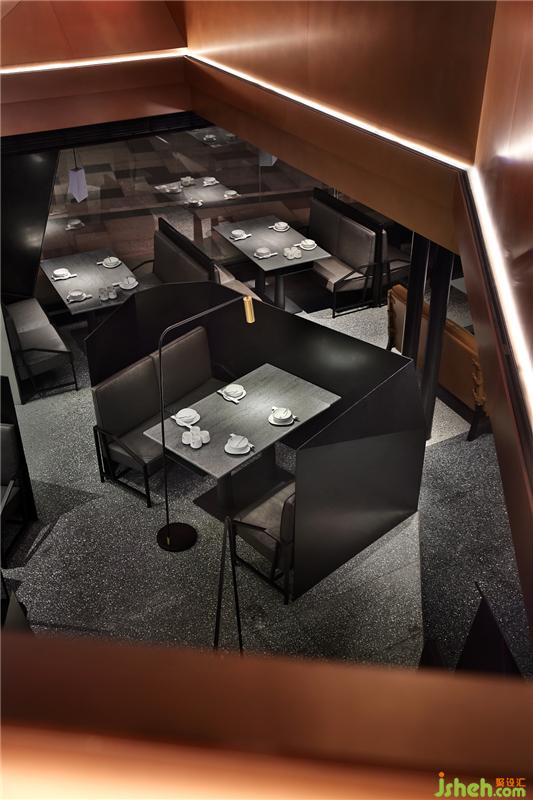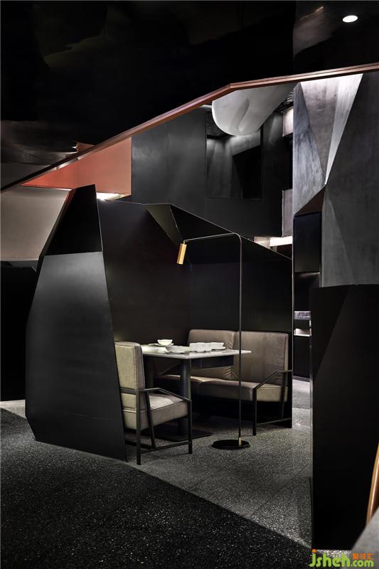 踏著溫潤(rùn)臺(tái)階就來到二樓,私密性陡然上升,這不單得益于包間的“腹內(nèi)有乾坤”,也有位置的抬升在味覺上的呼應(yīng)關(guān)照,“蝦”在舌尖的滋味的更上一層樓。餐廳設(shè)計(jì)