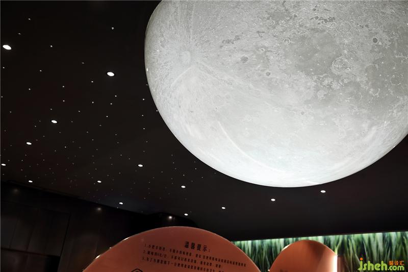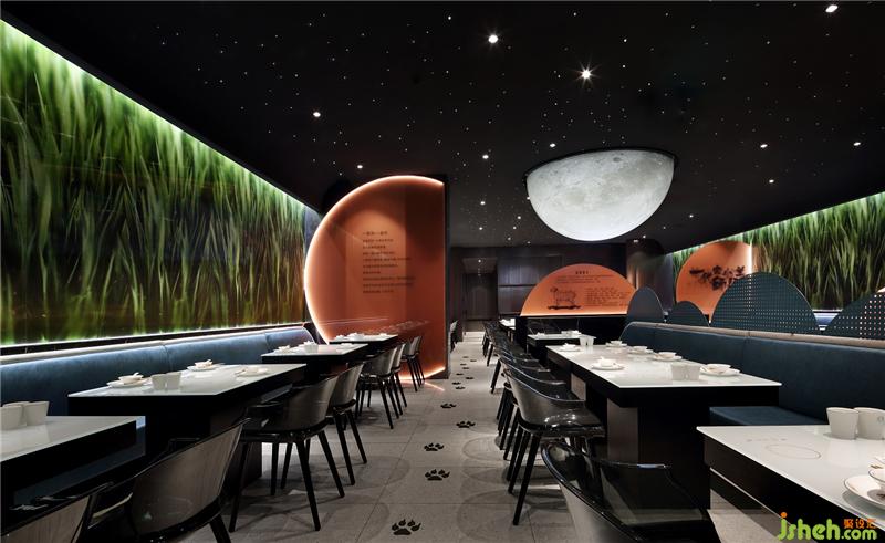 追隨狼的足跡進(jìn)入餐廳,寓意夜空的天花上繁星點(diǎn)點(diǎn),大滿月懸掛半空,瞬間給人開(kāi)闊之感,只走了幾步就進(jìn)入了星夜草原世界。