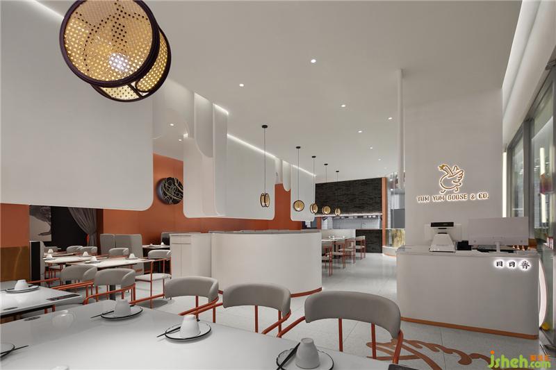 右側(cè),半圓明檔的掉鵝留存了鹵鵝店經(jīng)典印象。青磚排布的明檔讓餐廳設(shè)計帶上一絲復(fù)古氣息,不僅讓傳統(tǒng)材料煥發(fā)出現(xiàn)代藝術(shù)感,也讓顧客切身感受到餐廳對傳統(tǒng)鹵鵝文化的關(guān)照。