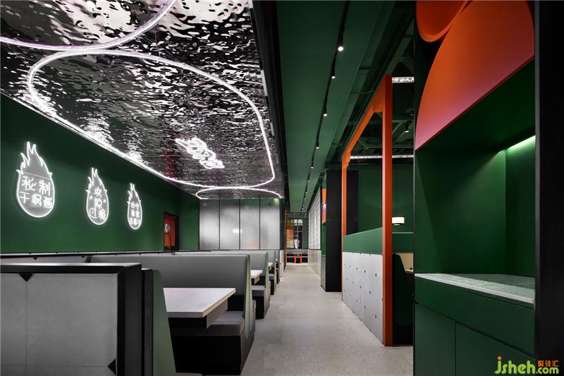 燈具由古代川渝餐盒轉(zhuǎn)變而來,符號應(yīng)用出自川式建筑,簡約、現(xiàn)代、活潑,炭舍將古典氣質(zhì)以現(xiàn)代化呈現(xiàn),升級為一個(gè)融現(xiàn)代和傳統(tǒng)于一體的餐廳。食在炭舍,歡辣過癮,口腹之欲得到全面滿足;美在炭舍,愜意溫馨,是歡聚之樂,亦是視覺之享。