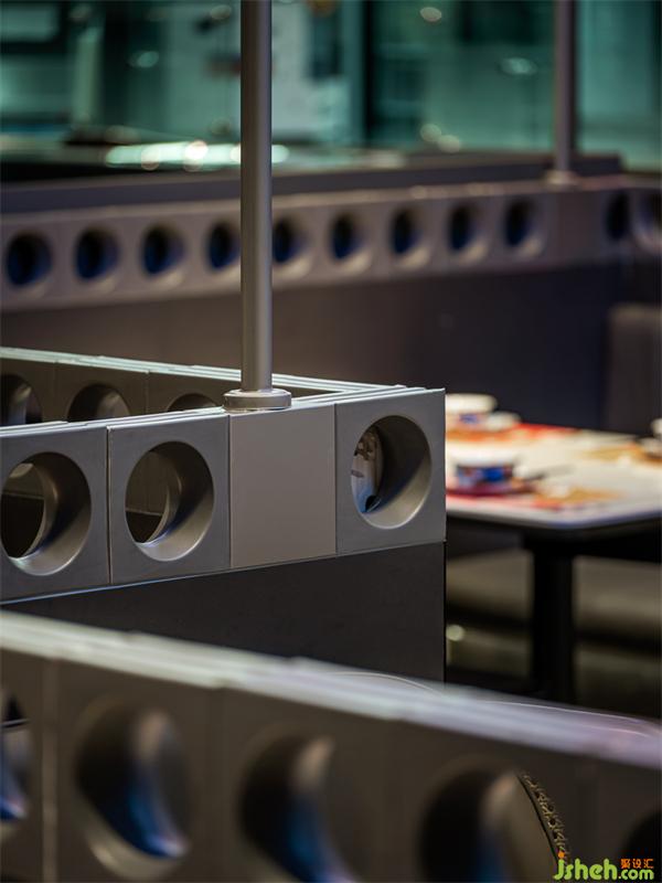 水磨石和仿木紋磚配合,讓整體氛圍更年輕化;金屬的加入,為室內(nèi)注入品質(zhì)感;魚(yú)泡泡一樣的紅磚,自始至終聚焦于“魚(yú)市”。