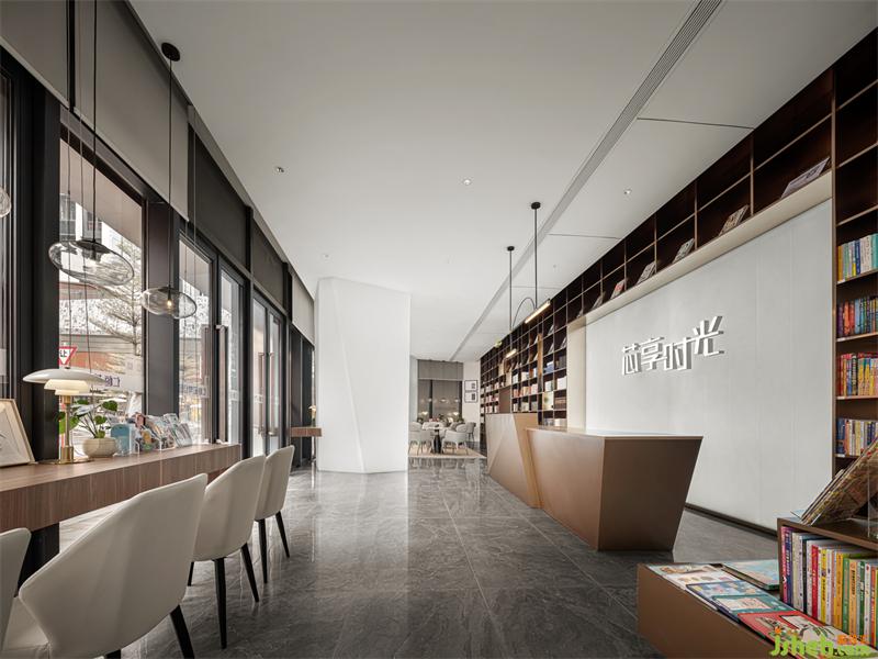 吧臺(tái)延續(xù)著門(mén)頭的立體折紙?jiān)O(shè)計(jì),舞蹈室設(shè)計(jì)室內(nèi)外自然呼應(yīng);大面積落地的陳列書(shū)柜,營(yíng)造著洋洋灑灑的書(shū)香氛圍,為安靜的閱讀時(shí)光注入精致感。