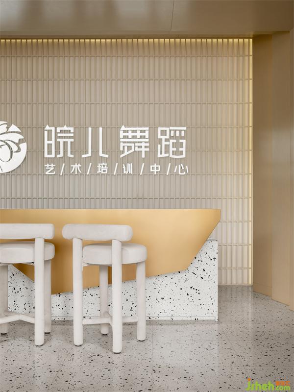「晥兒舞蹈」以活力黃為主色,舞蹈室設(shè)計(jì)在視覺(jué)上先聲奪人,給人躍動(dòng)感;再配合有自然呼吸感的水磨石和不規(guī)則鋼板吧臺(tái),以及網(wǎng)格墻體、藝術(shù)字、logo等,給人躍躍欲試之感。