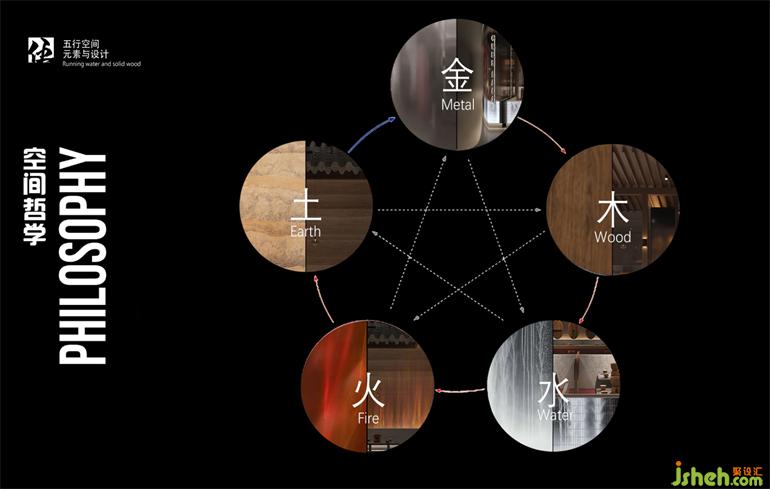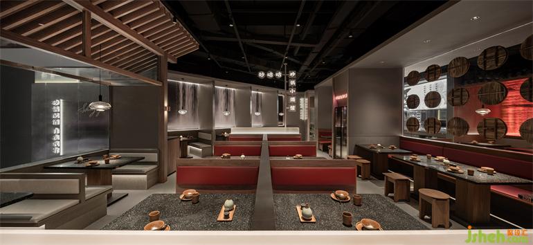 小酒館設(shè)計(jì)又以金木水火土五行元素為基礎(chǔ)的材質(zhì)應(yīng)用配比,品牌IP和品牌超級符號的打造,實(shí)現(xiàn)俠氣充盈、開合有度,渾然一體沉浸式場景餐廳空間。水木相調(diào),火土并濟(jì),孜孜以求文化傳承的同時(shí),處處呼應(yīng)著自然平衡的智慧。