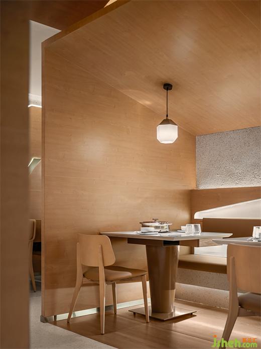 品牌logo從二維平面過(guò)渡到三維立體的轉(zhuǎn)化間,餐廳設(shè)計(jì)構(gòu)建起一個(gè)充滿椰風(fēng)海韻的世界。淺光燈帶循著圍擋上的異形幾何勾勒清晰的半椰子造型,借助地面反射出朦朧倒影,一深一淺地拼湊出椰子的完整形態(tài)。取景器般的矩形窗格定格專屬海島的旖旎景色,閃耀的品牌文字作為記號(hào)替精美成像寫(xiě)下注腳。