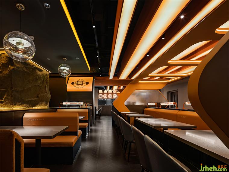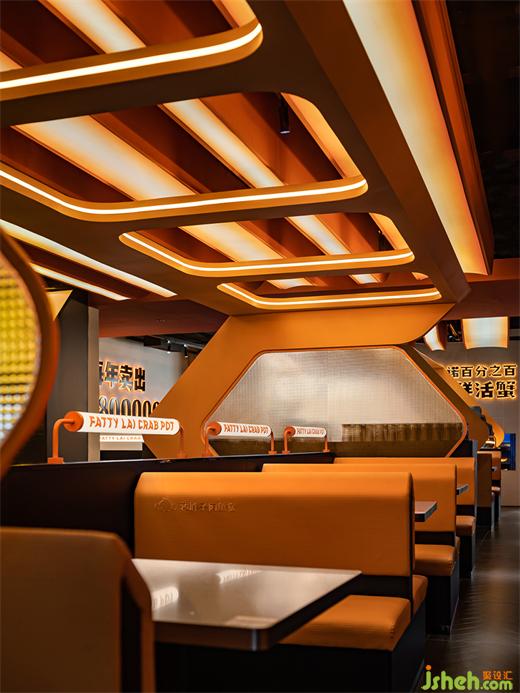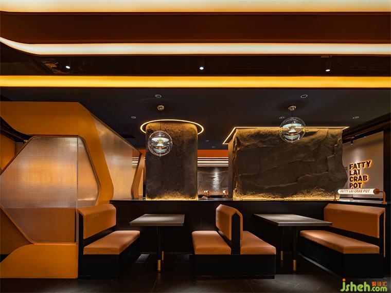 深圳領(lǐng)展中心城店是賴胖子品牌與藝鼎設(shè)計(jì)共同合作的第一家門店,餐廳設(shè)計(jì)師以核心食材“螃蟹”作為靈感創(chuàng)作的起點(diǎn),同時(shí)將視線轉(zhuǎn)移至地球之外,打造一座極具科幻氣息的“火星吃蟹站”。
