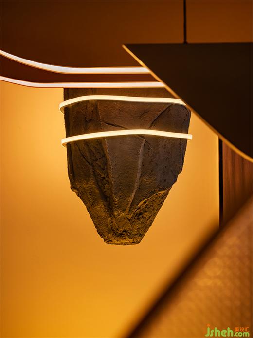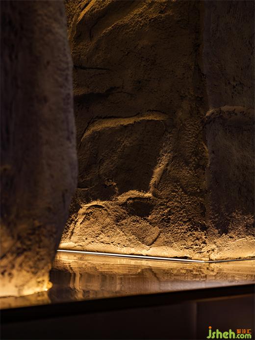 凹凸不平的塑石假山墻面象征崎嶇的火星地表,天然的形態(tài)巖色在時(shí)尚現(xiàn)代的裝潢中增添一絲完全不加修飾的原始樸素美感。