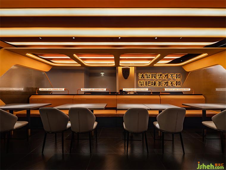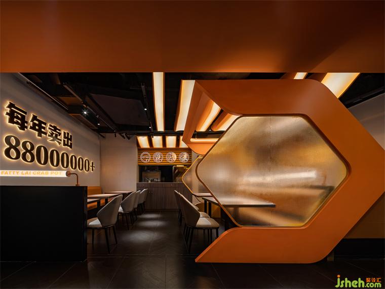 由蟹鉗演化轉(zhuǎn)譯的圖形簡潔大氣卻呈現(xiàn)特殊的表現(xiàn)力與辨識度,成為空間內(nèi)的專屬記憶符號。餐廳設計大至餐區(qū)背景板、隔斷,小至咨客臺,都全方位覆蓋鮮明的內(nèi)容標識。
