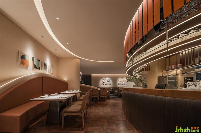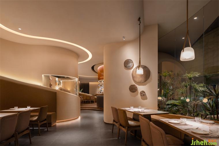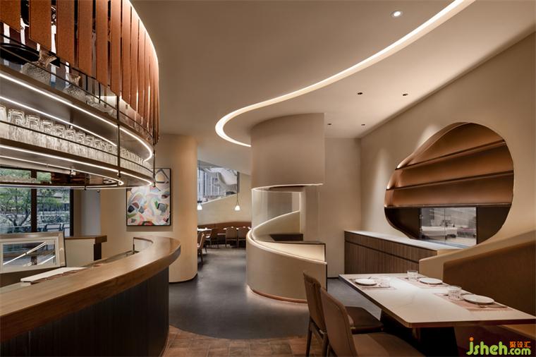 本案靈感源于神秘莫測的洞穴和循環(huán)律動的克萊因瓶,餐廳設(shè)計通過自然之美和人文藝術(shù)發(fā)現(xiàn)美食與環(huán)境的最佳組合方式。