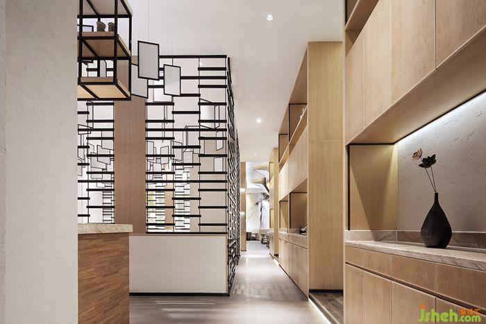 淺灰色地磚降低了整個(gè)空間的飽和度,多了份空間質(zhì)感。木紋鋁片做隔斷裝飾,用現(xiàn)代的手法把榕樹樹枝的形態(tài)在空間體現(xiàn),在分割空間的同時(shí)也裝飾和提升了整體空間氣質(zhì)。