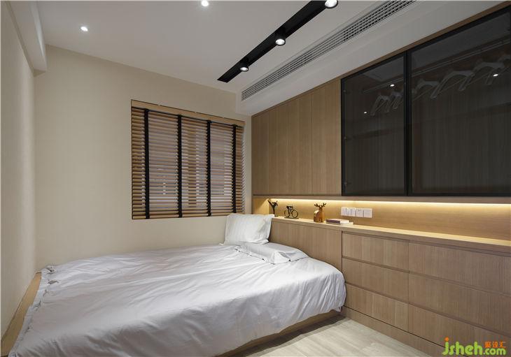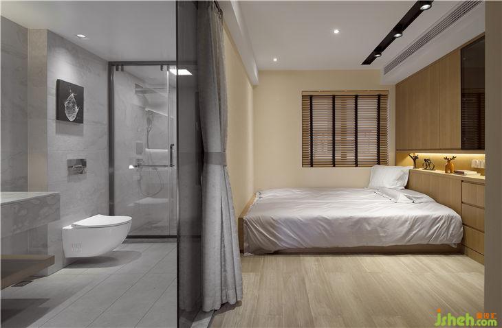 衛(wèi)生間的堵頭設(shè)置了一面墻的大衣柜,原木色和米白色之間是院子里折來的枝條,江南不在窗外也不在三月,就在此時(shí)。