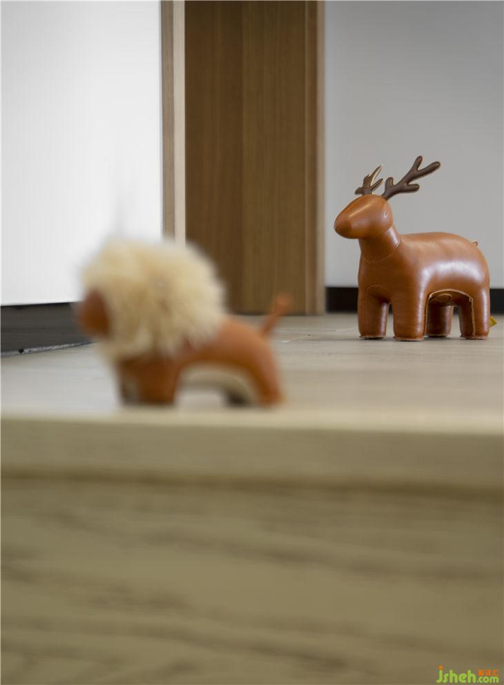 書房在樓梯口,為了增加樓梯間視野,拆除了書房整面墻體,做推垃門。令兩個(gè)空間靈活閉合與融匯。