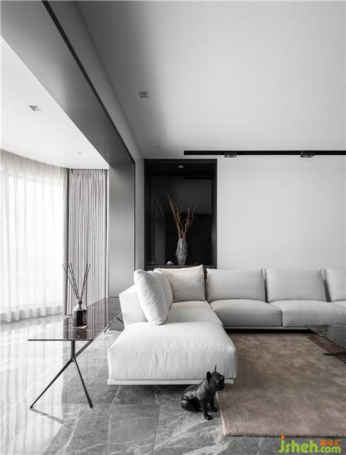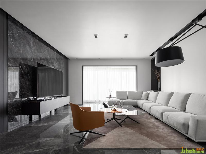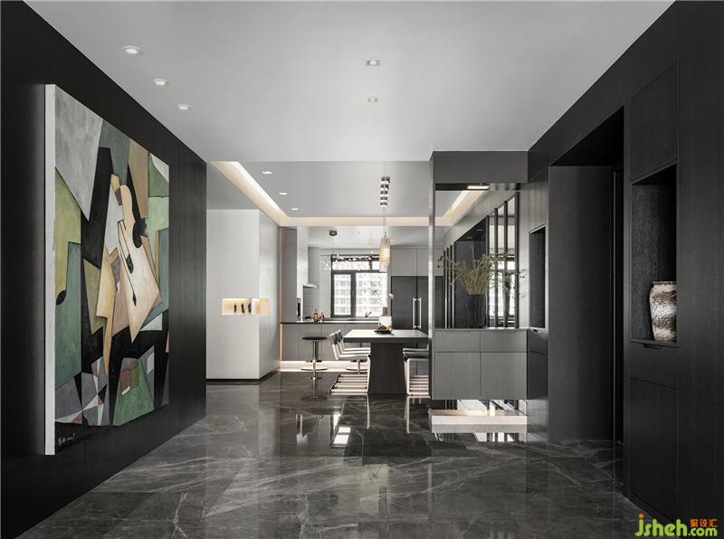 主要材料:煙熏黑橡、云朵拉灰大理石、白色乳膠漆