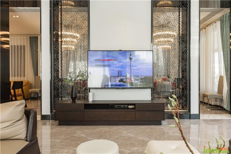 可以看到在整個空間的裝修修飾上不銹鋼的使用比較多,從天花的不銹鋼裝飾線條到門套的裝飾線都是用的黑色拉絲不銹鋼,不過最大的亮點還是這個不銹鋼背景鏤空隔斷裝飾,因為這是餐廳和餐后娛樂區(qū)域的鏈接設計,即不能全部封閉但又需要有空間連接且不能全開放。所以這一設計即滿足了美觀效果,又滿足了功能連接。