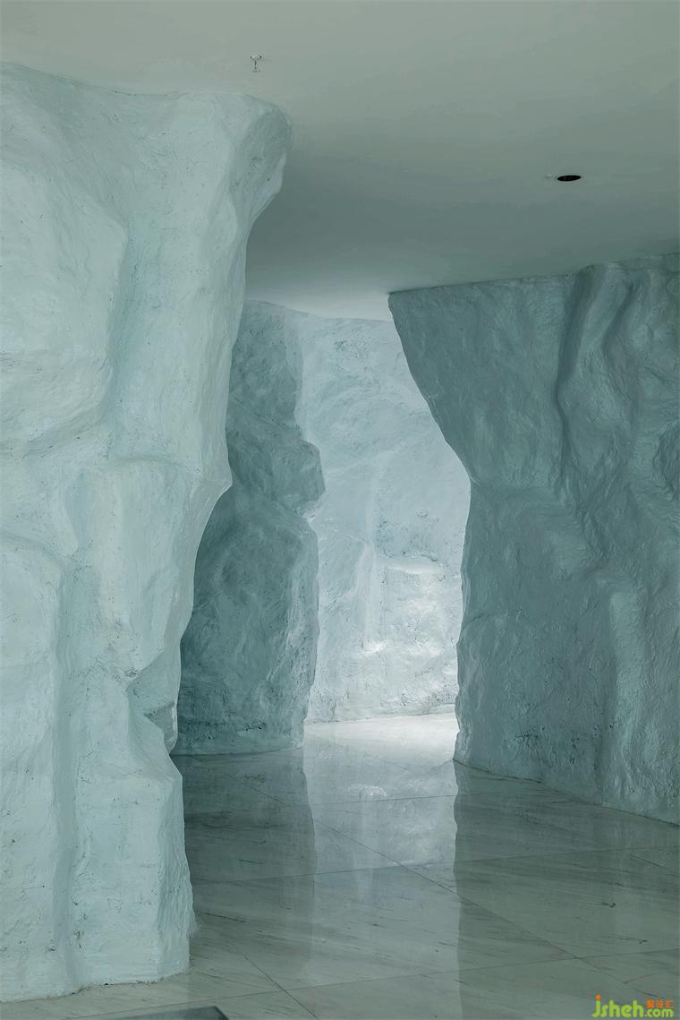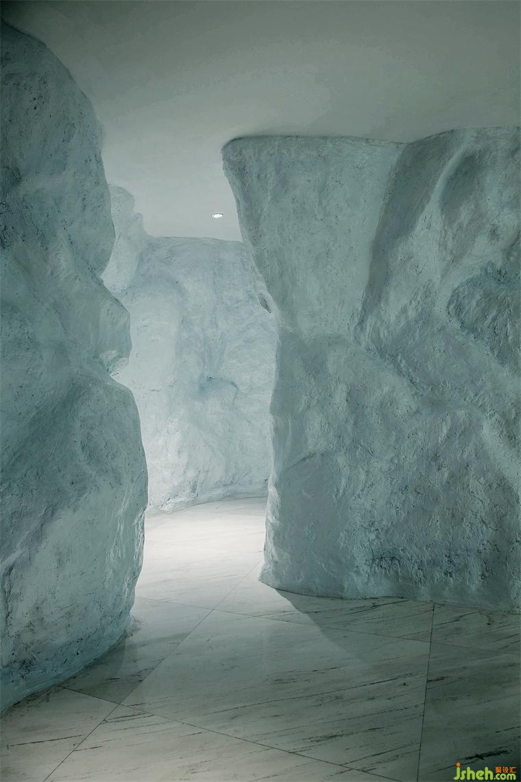 甫一進(jìn)門,粗糲的純白石面圍合出曲折幽深的入口,裝修設(shè)計是引領(lǐng),亦是鋪墊。光、影、石壁交織出視覺的壓迫感,于無形中營造沉靜的氛圍,隔離了外界的喧囂,行走其中,頗有曲徑通幽的意味,體驗的期待感進(jìn)一步拉長,也為進(jìn)入空間做足鋪墊。