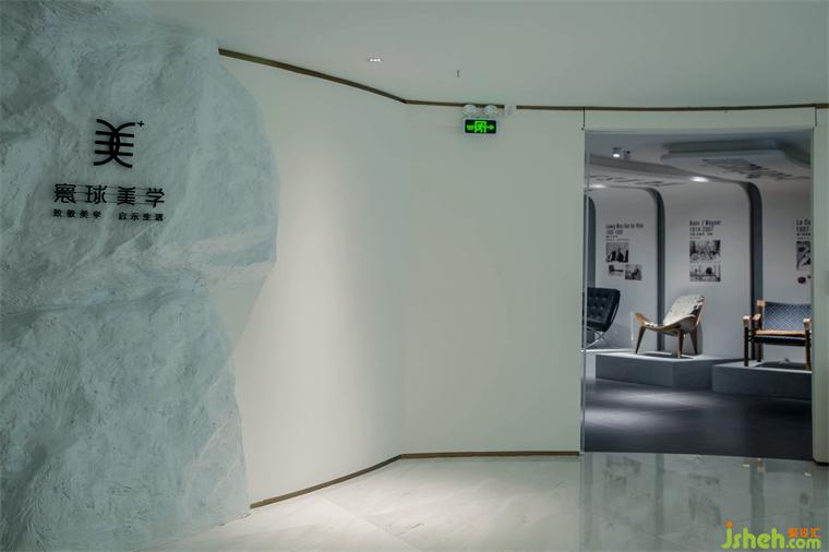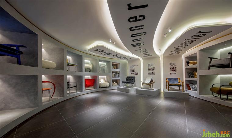 又行數(shù)十步,豁然開朗,設(shè)計師于展廳中設(shè)置框架通道,致敬藝術(shù)大家。漢斯·瓦格納、密斯·凡·德·羅、勒·柯布西耶……藝術(shù)巨匠們的身份符號和代表之作被有意識地加入到空間構(gòu)建之中,裝修設(shè)計帶領(lǐng)人們回歸到設(shè)計本身,在日常的空間里,開啟共同的語言與話題,也宣告著寰球美學(xué)的品牌態(tài)度和對當(dāng)代設(shè)計的理解。
