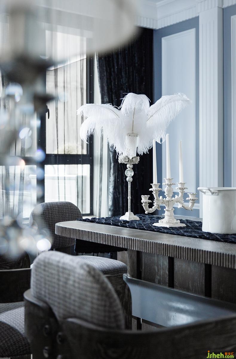 餐廳不失為整個(gè)空間的亮點(diǎn),搭配極富幻想的羽毛裝飾,打造出高雅輕靈的氣質(zhì)氛圍。藍(lán)與白的搭配,帶來極為舒適的視覺變化,互相融合交織共奏。輕嗅滿屋芬芳,隔著屏幕也能感受空氣中曼妙的甜香。