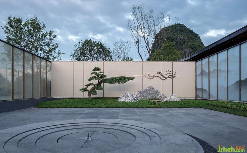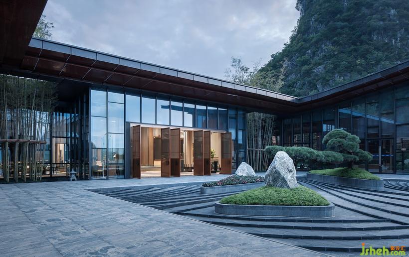 項目擇址在千年文獻名邦桂林,將城市悠久的歷史、優(yōu)美的地貌相結(jié)合,打造出別具一格的學府派氣質(zhì)內(nèi)涵,成為當?shù)氐貥诵缘默F(xiàn)代中式文化建筑。會所設(shè)計