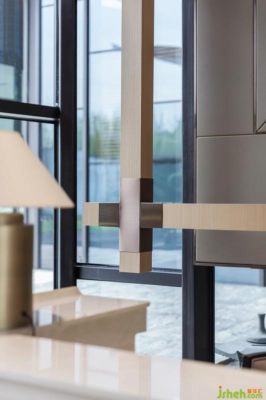 大面積的直線條勾勒出空間意境的氛圍。啞金色的臺燈,在細節(jié)處透露出現(xiàn)代低奢風范。