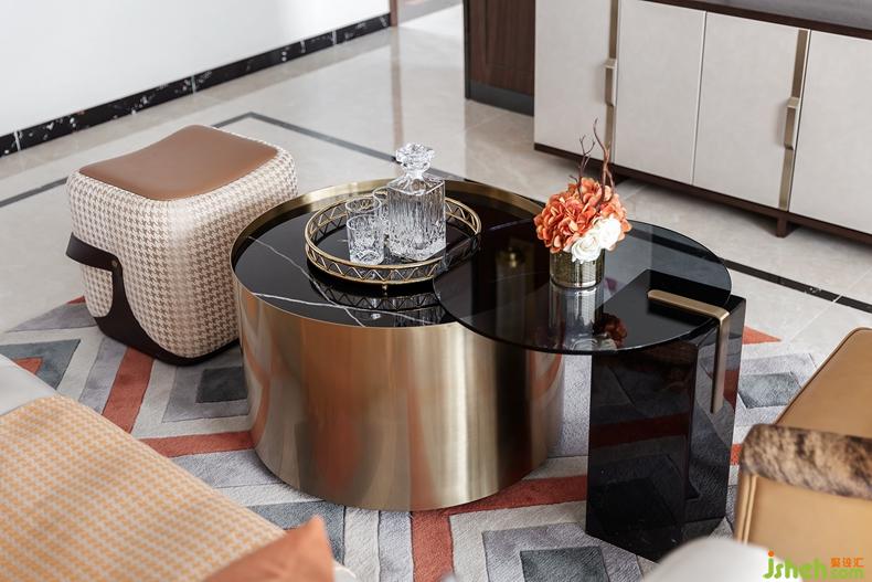灰色的菱形格紋地毯紋絡(luò)凹凸起伏,與沙發(fā)形成不同色階的對比與延伸。高貴的灰色大理石為基調(diào)搭配出低調(diào)奢華之感,茶幾拉絲面金屬材質(zhì)點亮了空間活力,空間疏密有致,調(diào)節(jié)空間節(jié)奏感,進(jìn)而使環(huán)境和諧有序?!按蠖Y不辭小讓”,真正的奢華隱藏于細(xì)節(jié)的雕琢之中,集于凝練成簡潔、優(yōu)雅的存在,才能直抵內(nèi)心。