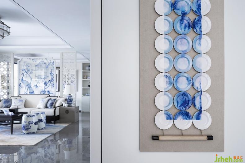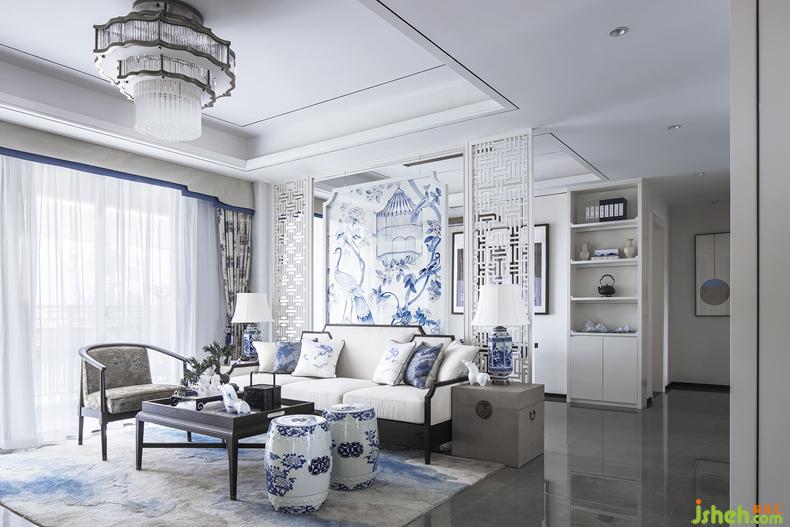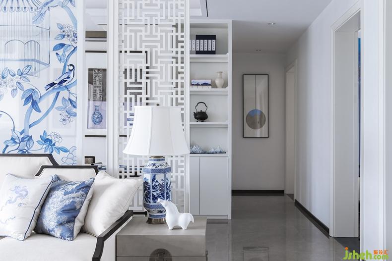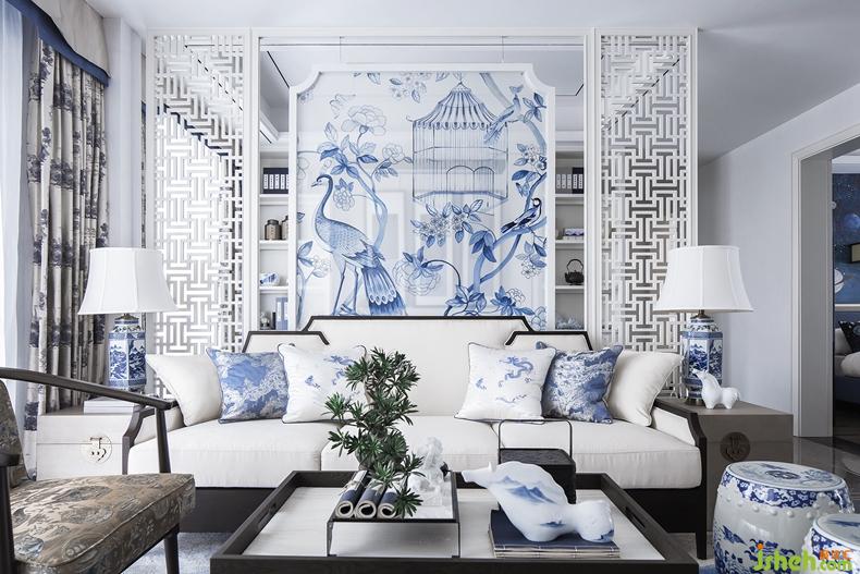 客廳青花瓷墩,靈動氣韻,實(shí)木小椅,憑添休閑氣質(zhì)。而具有簡約時(shí)尚感的白色的青花隔斷背景,亦古亦今,亦繁亦簡。