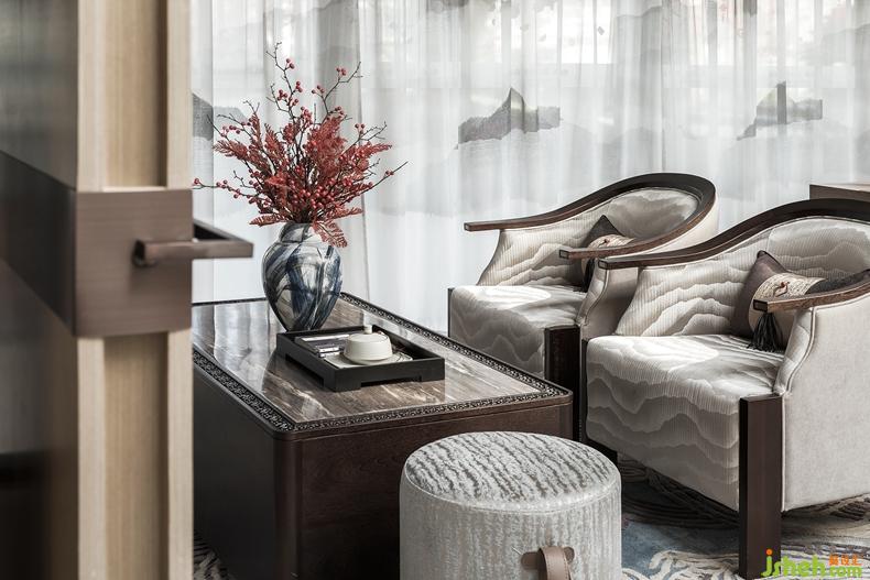 隨處可見的硬裝用料與暖系燈光相得益彰,讓光與影的交織遙相呼應(yīng)。透過簾幕的清風(fēng)陣陣拂來,只覺遠(yuǎn)處的群山隱沒,光色柔美,洋洋灑灑。