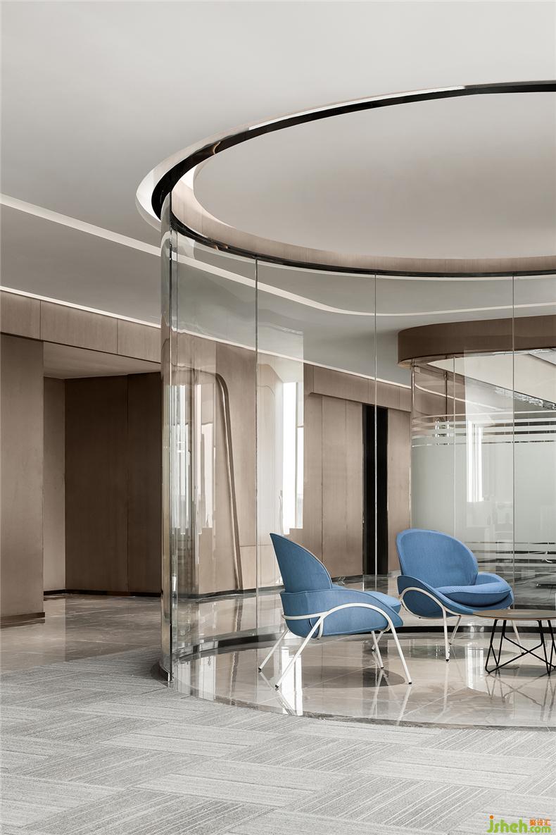 當(dāng)光線進(jìn)入空間,某種被凈化了的空靈的氣氛便會(huì)產(chǎn)生,讓空間更加氣質(zhì)化。南寧辦公室設(shè)計(jì)通過空間的疊加與縮放、玻璃的透明屬性及肌理變化,最大限度地敞開空間尺度。