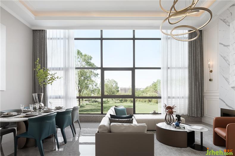 整個(gè)空間彰顯優(yōu)雅的氣質(zhì),沉穩(wěn)低調(diào)的意式家具帶來(lái)豐富的體驗(yàn)感。樣板房設(shè)計(jì)大面積留白的手法,搭配蒼青色系帶來(lái)了一種現(xiàn)代的清新感,不同材料的碰撞,更是一種肌理脈絡(luò)的變化。