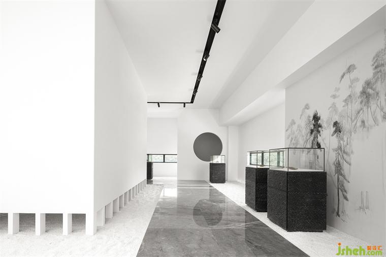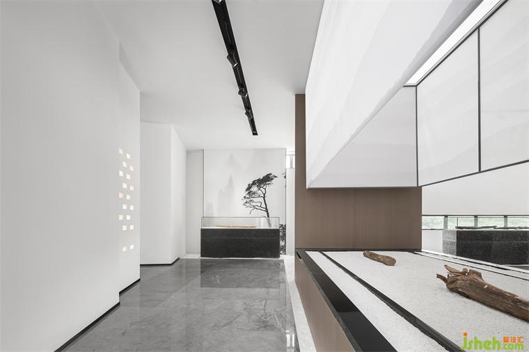 橫向延展的木質(zhì)線條,主導(dǎo)空間走向,為每一停駐的景致增添決定性指引。柔和而深淺錯落的自然色彩,在白、黑、灰的映襯中更顯通透,時光是宇宙最神秘的工匠,在此天賜靈物上,一筆一畫雕刻出歲月走過的印跡,博物館設(shè)計傷痛,愈合,沉寂,繁盛,皆展露無疑,在圍合意境的維度里,為人、器物、光影、線條、色彩注入契合氣韻,共同恪守著神秘的平衡法則。