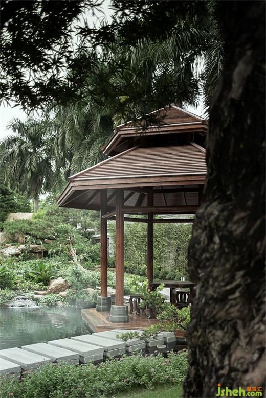 循著石道邁步向前,于方圓之間,勾勒出設(shè)計所要傳遞的東方意涵。別墅裝飾正所謂,亭之六角,天地四方。在女主人和設(shè)計師的堅持下,涼亭得以保留,花園別墅裝修設(shè)計原來的材質(zhì)替換成天然柚木。
