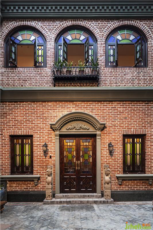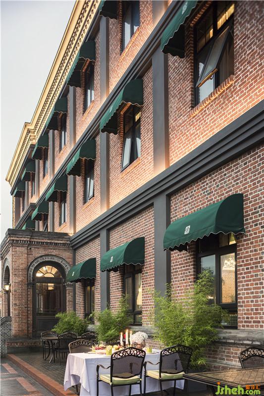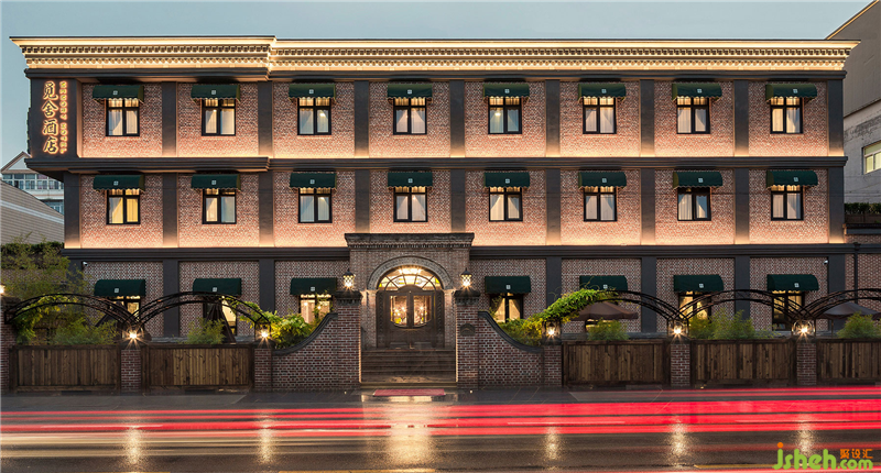設(shè)計(jì)師王曉飛與酒店業(yè)主張總在設(shè)計(jì)靈感以及表現(xiàn)方式達(dá)成完美契合,就建筑表皮而言,其靈感來(lái)源于民國(guó)建筑,既保留中國(guó)的傳統(tǒng)風(fēng)格,又吸收了一些西洋建筑元素,是從傳統(tǒng)走向現(xiàn)代的過(guò)渡階段,其表皮所有的紅磚皆來(lái)自民國(guó)時(shí)期的粘土磚,在外觀上最大化的保留歷史韻味。