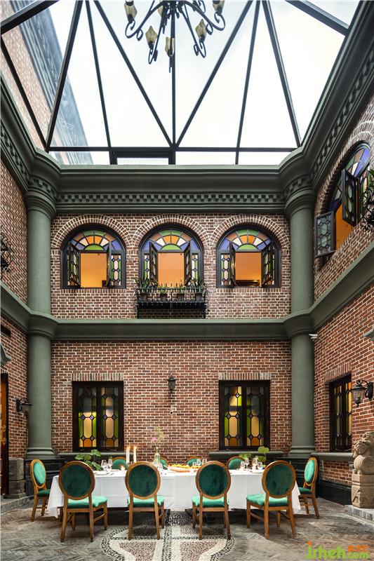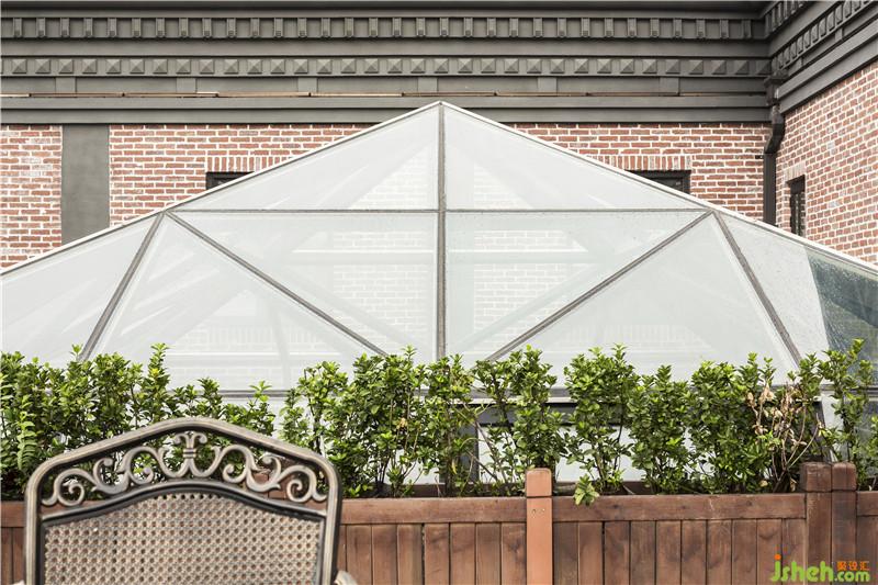 花園的上方為酒吧區(qū)域,露天區(qū)域提供了極好的視野,金字塔的造型與傳統(tǒng)紅磚相映成趣,同時,這也成為設計師最傾心的一景。