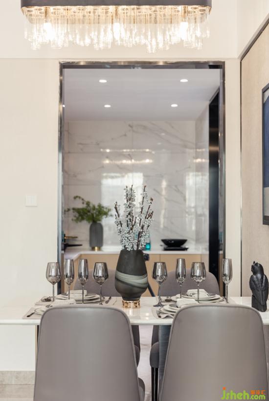 餐廳部分我們延續(xù)了客廳的基調(diào)及材質(zhì),在保證作品整體性的同時(shí)又通過細(xì)微之處的微妙變化讓這個(gè)區(qū)域相對(duì)獨(dú)立開來。深圳室內(nèi)設(shè)計(jì)師