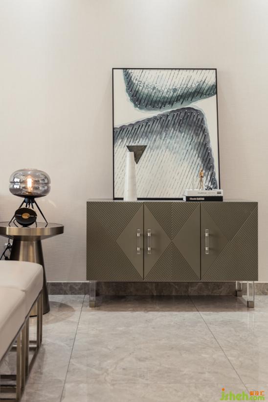 掛畫的不規(guī)則曲線圖案又在視覺及心里上打破了這種寧靜,更添加了一份律動(dòng)的優(yōu)美。