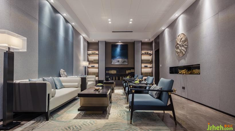 洽談區(qū)承一處閑暇,以中式的神韻為底,融現(xiàn)代幾何圖形為“翼”大小不一,飛懸半空。