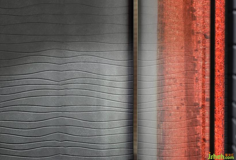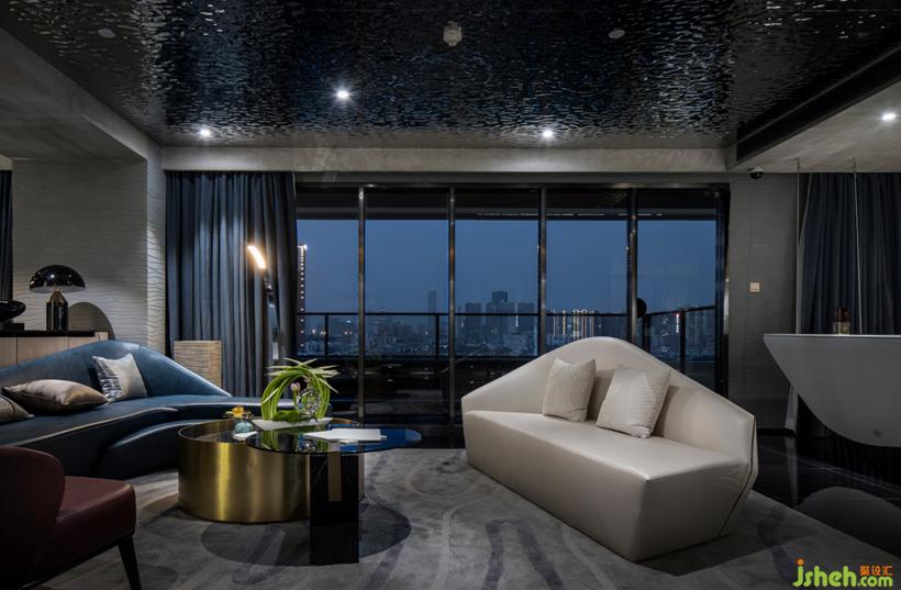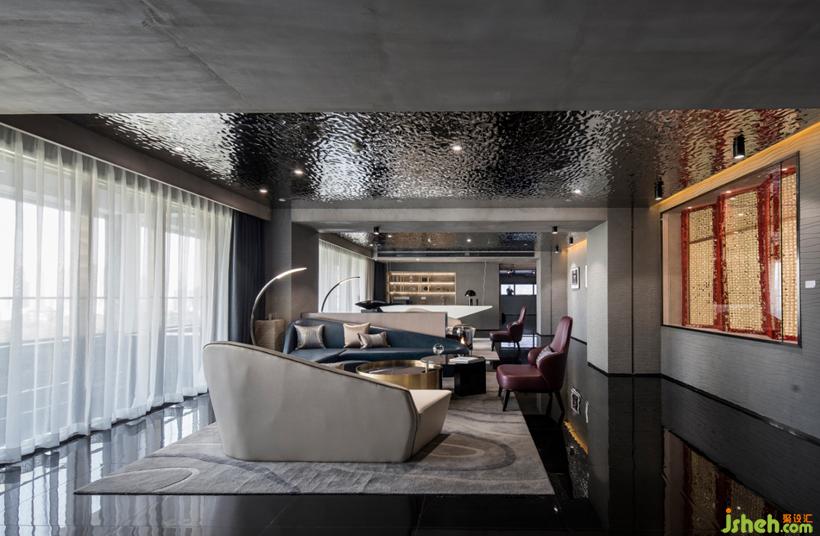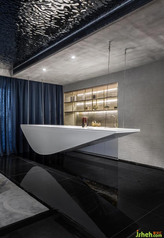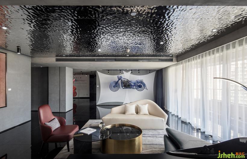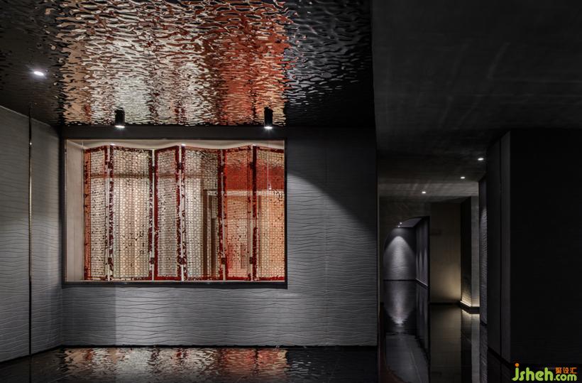 天花頂水波紋金屬板材質(zhì)在地面暈開層層波浪,讓光線若有似無的流動。