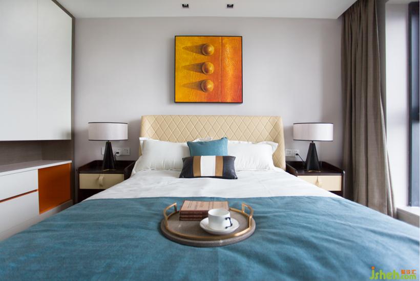 現(xiàn)代感十足的床頭燈飾,神秘有趣的掛畫,是空間主人對當下生活及自我的一種解讀。