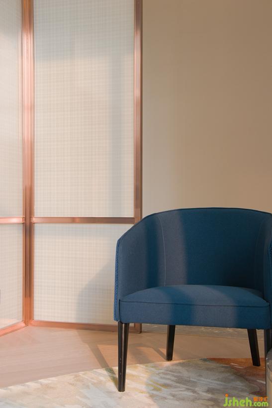簽約區(qū)以和諧作為主要表達(dá),向心式的布局手法促進(jìn)了人與人的交流,寶藍(lán)色單人沙發(fā)將整個(gè)空間由樸實(shí)帶向時(shí)尚與尊貴。