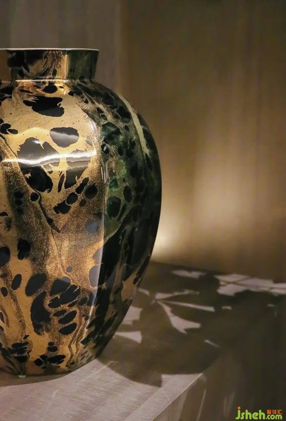 植物的倒影與花器斑駁的紋理形成了互動(dòng),精致的陳設(shè)在燈光的映襯下更顯品質(zhì)。