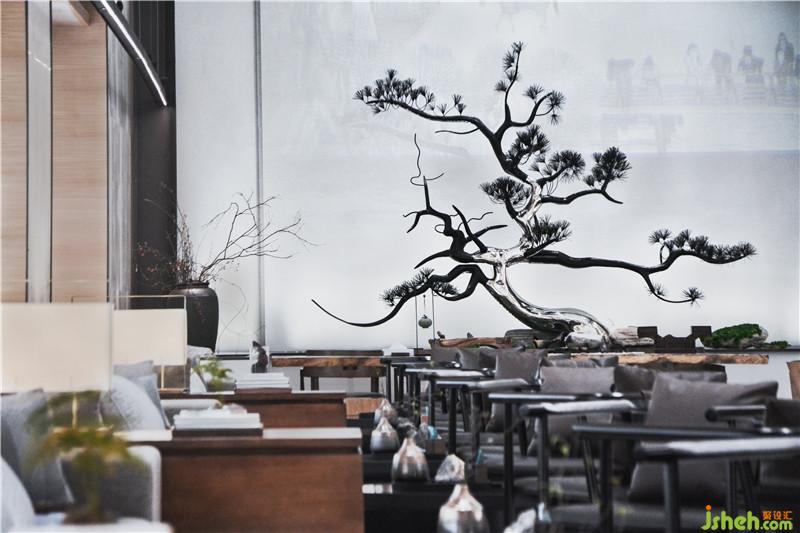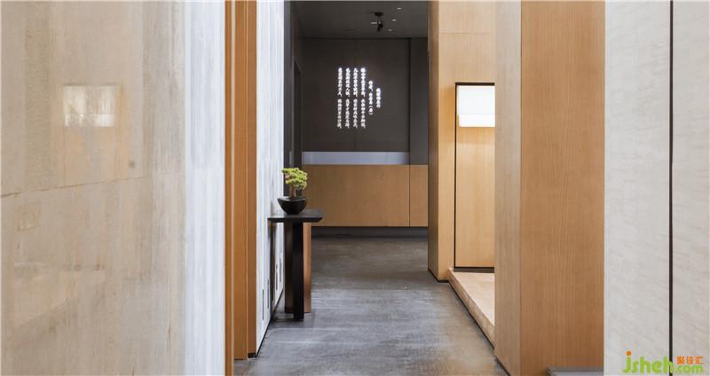 空間以水墨江山之態(tài)融合木質(zhì)墻體