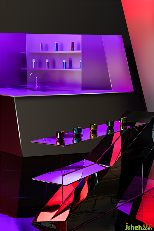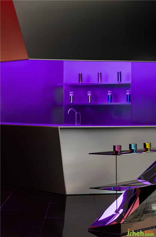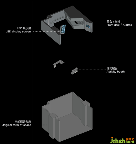 空間原始場地位于來福士商場主動線位置,和場地形成矩形看面。基于重慶經(jīng)緯縱橫的立體城市結構與空間的新商業(yè)需求,展廳設計師意圖打造一個富于吸引力的場景化空間,在CBD高速翻轉的場景里營造一個多維舞臺,金屬鈦的前世今生在這里拉開大幕。