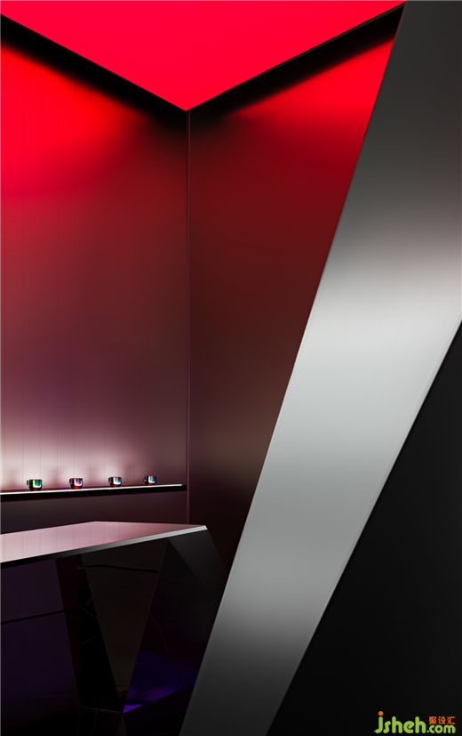 關(guān)于礦洞內(nèi)在形式前期進(jìn)行了多輪實驗,最終決定在造型上強(qiáng)化鈦的金屬剛硬屬性。頓挫曲折,大斧劈皴,將礦洞幾何化,塊面解構(gòu)切分。此法處理不僅來源于設(shè)計直覺,亦有東西方藝術(shù)共性的來源。外部看這個由傾斜的造型和物體所重組的空間宇宙,展廳設(shè)計造型隨機(jī)而夸張,模糊了常規(guī)頂立面的關(guān)系。但其尺度是基于功能準(zhǔn)確而精密的。