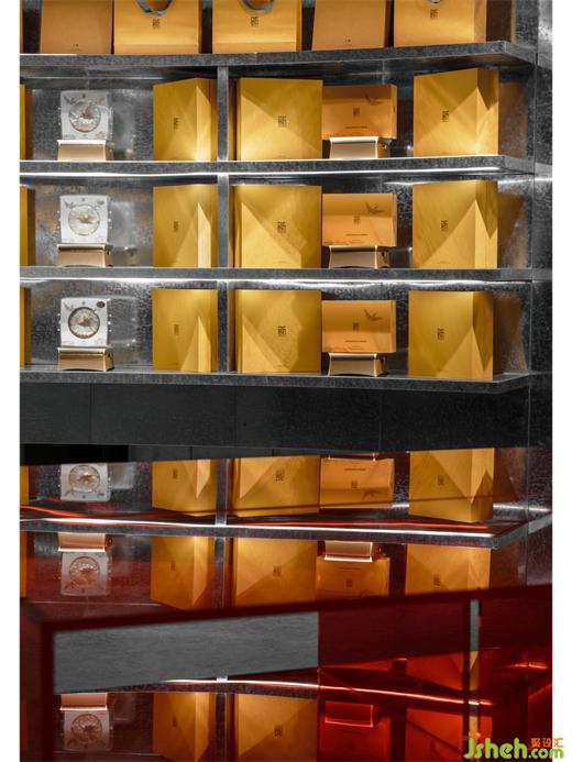 視覺的沖突和未來感來源于次元壁打破后的沖突和矛盾。傳統(tǒng)木構(gòu)建筑的細(xì)部被百倍放大承擔(dān)空間內(nèi)的新需求。選品區(qū)巨大的金屬網(wǎng)圍繞環(huán)形燈帶籠罩直播場,體量的反差打破傳統(tǒng)物理世界的慣性認(rèn)知,開創(chuàng)性的想象和觀念都有機會滋長。直播不再受限于封閉格子間而是拓展到整個空間場景,人的移動性也隨之變強,流量吸納大幅增長。