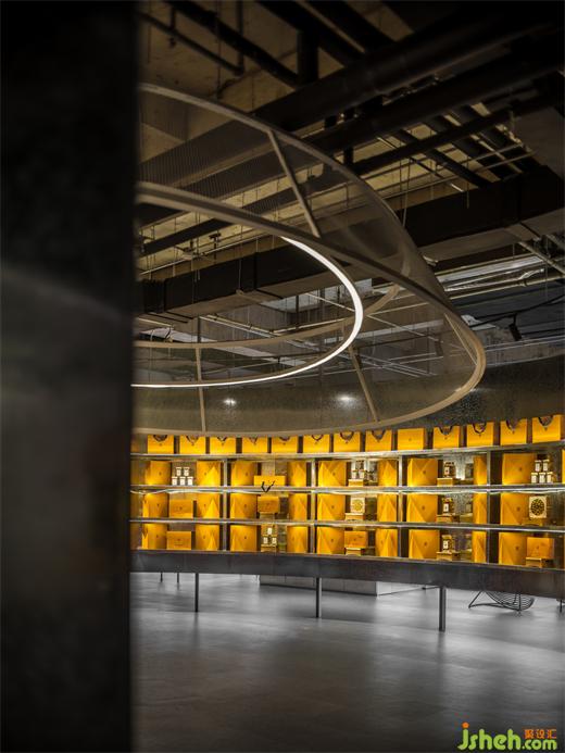 裸露的屋頂與大量鋪設(shè)的銀色腳手架沿用于整個空間,粗糲的原始感祛除了一切裝飾性雕琢,直播基地設(shè)計空間功能全部由材料簡潔的幾何構(gòu)成直接實現(xiàn)?;貧w本源的真實和拙樸也與同仁堂藥食之源互為襯托映照。
