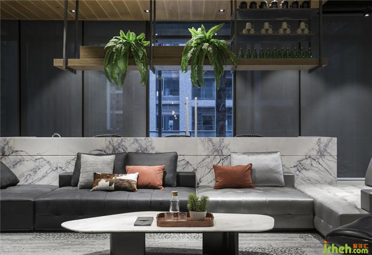 中央接待前臺(tái)與沙發(fā)休閑區(qū)、露臺(tái)一筆相連,