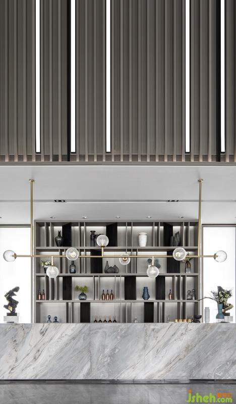 “我們專門選取了與建筑外觀的沖孔形態(tài)相呼應的燈飾,它是建筑形態(tài)在室內(nèi)空間中得以延伸,我們想體現(xiàn)出濃重的儀式感?!痹O計師說。