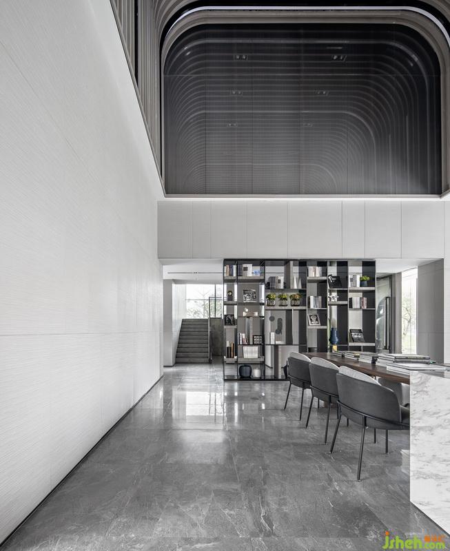 珠海保利·茉莉公園銷售中心的幾何的線條和平靜冷調(diào)的配色,散發(fā)著某種迷人且莊嚴的秩序感。凝聚了無數(shù)仰望視線空中“時光隧道”,又以其延伸開去的韻律節(jié)奏,成為整個空間最精彩的一筆。