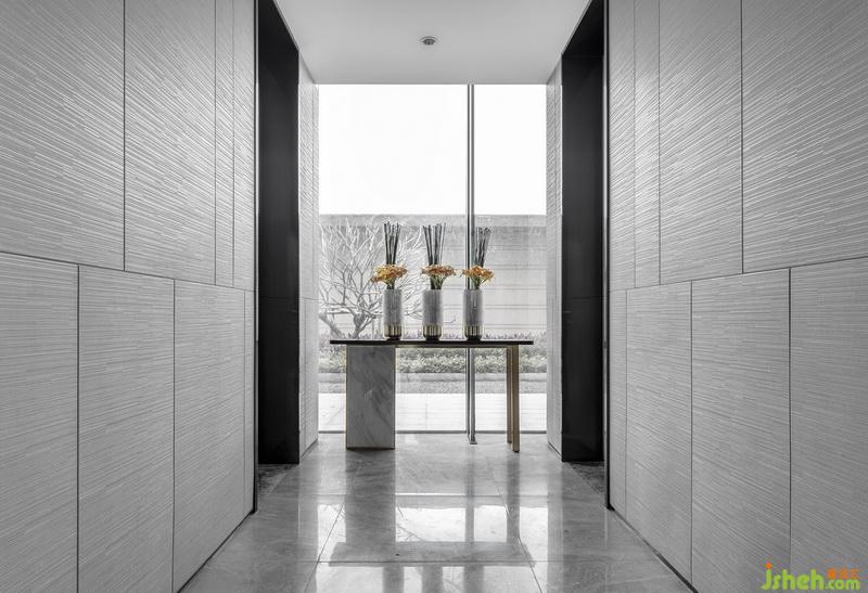 黑白灰的組合仿佛為空間中的時間按下pause鍵,大面積的灰調(diào)甚至與建筑外觀產(chǎn)生了呼應。低飽和度的色彩互相滲透,分寸差異皆成風情,層次感在各個立面上尤為明顯。金屬的光澤和原木的質感強調(diào)空間細節(jié)的輪廓,平衡了大片灰調(diào)的沉悶,反襯出空間的純凈感。