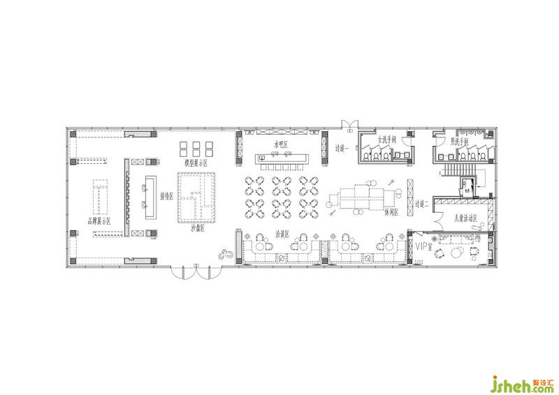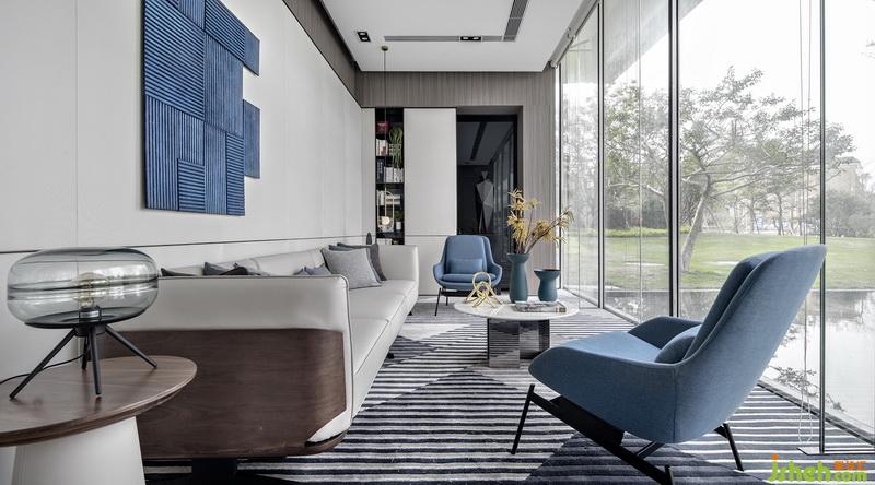 空間是幾何的線面,而線面在空間之中,既是宣示空間的物質(zhì),也在指引空間的精神。在具體的空間之中,功能性的分割讓空間形成開放的實體。也在連續(xù)性的擴展之中,尋求用幾何的形式去處理空間的內(nèi)在關(guān)系。我們想以開放寬松的視野刻畫了一個簡約輕松的空間,洽談區(qū)作挑空設(shè)計,于是在中空位置采用虛實結(jié)合的設(shè)計手法。木格柵與燈帶相結(jié)合,立面采用灰鏡使中空部位得以延伸,搭配建筑純凈玻璃幕墻,形成一條時空走廊的感覺。